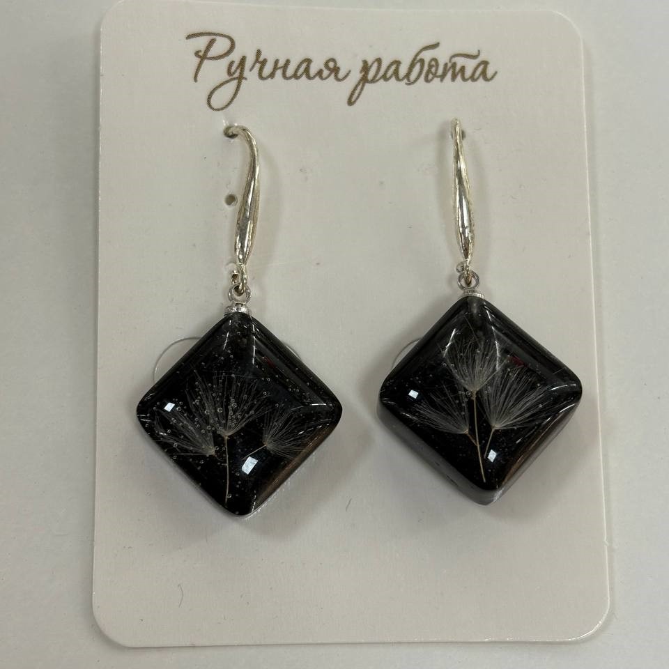 Серьги черные с одуванчиком
